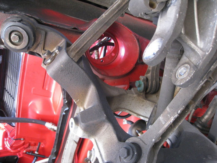 フロント、リヤともピロアッパーマウントが標準で(ラバーブッシュ無し)ピロボールを押さえる巨大なナットを外すのは、大仕事です(^^;