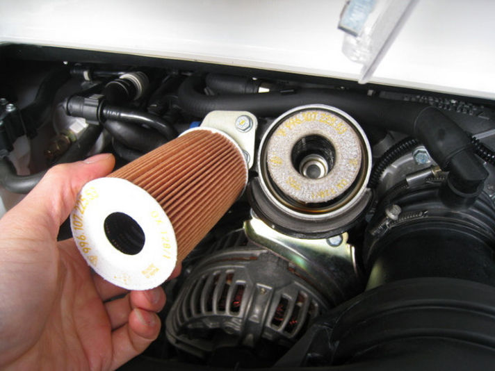 まるい筒状のフィルターはエンジンオイルフィルターになります。
