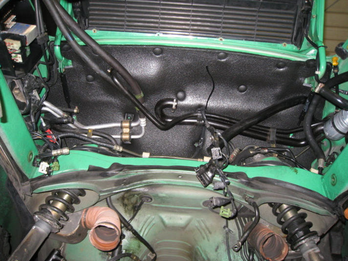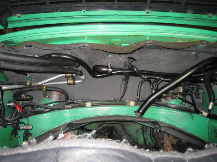 エンジンルームに張られている防音材がボロボロとみすぼらしい状態が目に付きます。