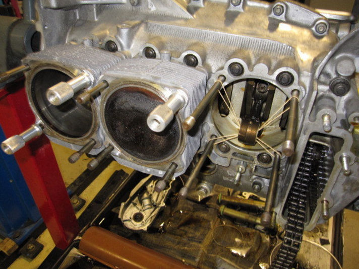 真中の写真、空冷エンジンですのでシリンダーヘッドと同じですが1気筒ずつ取り外していきます。