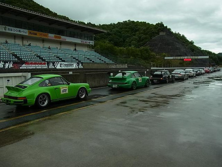 レインタイヤに履き替えているポルシェも多く見られました