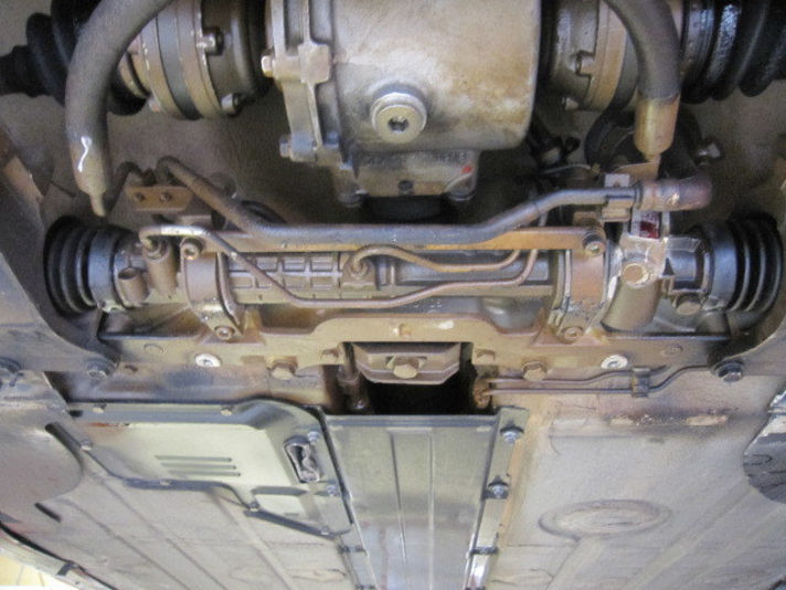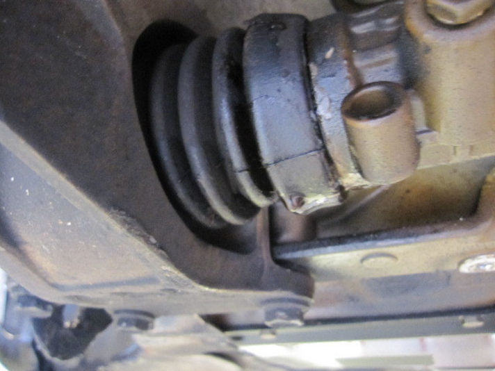 左の写真、車両をリフトアップしてステアリングラック全体を写しているものです。