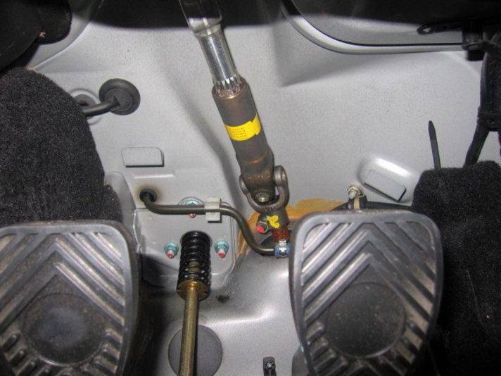 左の写真、ペダルの奥に見えるのがステアリングからのロッド部分です。