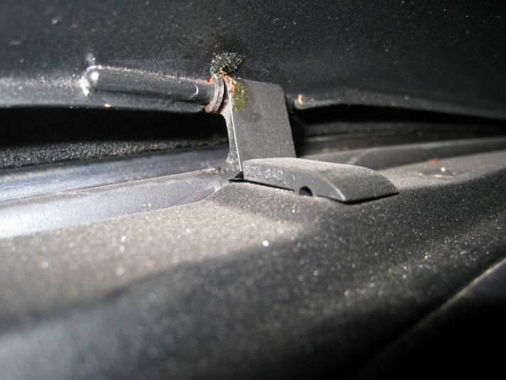 スイッチを押し動かすと、スムーズに開閉しますが、走行中のエアーが室内へ巻き込むのを防止するためのスポイラーがスライディングルーフを開けると出てきます。ヒンジが骨折です・・・カタカタ音がしたり、最後まで閉まらなくなったりします。 プラスティック製の部品が左右に有り両側交換です。