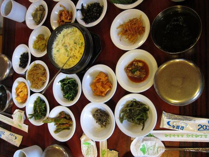右の写真四日目のお昼に食べた田舎定食(ツアー料金に入っています。) 日本で言うおばんざいです。 その中で写真の真ん中に写っている、韓国風の茶わん蒸し これがものすごく私の口にあい、美味しかったです。 味も和風だしっぽく、ご飯のうえでかければあっさりめのたまご丼としてとても美味しかったです。