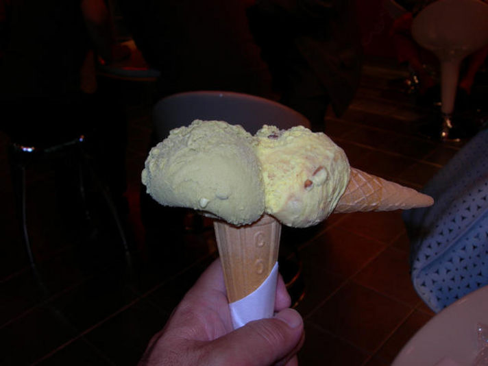 今回紹介するのは イタリアン ジェラード(アイス)です 一年365日300日は食べている 私の大好物です あまりお酒の飲めない私ですが 家の冷蔵庫にビールは冷えていませんが 冷凍室にはほとんどアイスかガリガリ君が入っているほどのアイス大好き チョイ不良おやじです (以前滋賀県のある場所で31アイスのテナントを考えたほどです) その私が久々に美味しいと思ったアイスが今回紹介する BABBI(バビ)のジェラードです 先日ポルシェパレードの帰りに寄った中部国際空港の中にこの店が あります 店の前は行列が出来てい並んで食べるのはいやな 私ですから 帰りに行列が無ければ食べて帰る予定で 空港内をうろうろしてもう一度 店の前に行くと行列が無く食べることにしました 何種類かあるで 一つの値段ではなく 種類により値段が異なるとの事です 私は スペシャルな写真の二種類一つはピスタッチオとアーモンドクリームチョコレートの頼みました 味は美味い農口で香りがあり甘すぎず 舌触りも良く 最近食べた氷菓子の中ではトップクラスです チョコレートも買いましたが少し高すぎだと思いました(個人的に) |