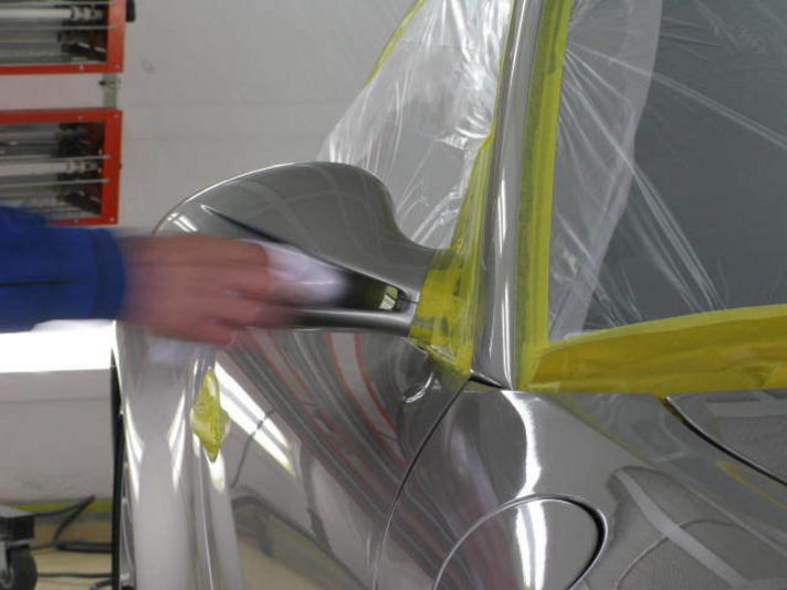 マスキング施工作業が完了いたしましたので、電動バフで磨いていきます。