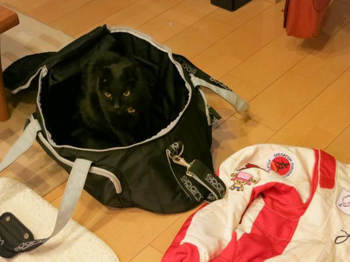こんな言い訳を書きながら皆で答えは 楽しく走りましょう(笑) そこで 左の写真我が家のギギが昨晩レーシングスーツ及びヘルメットを 鞄に詰め込んでいると得意の鞄を見ると入って邪魔をします(笑) これですか 明日は楽しく 三台でランランラン 走行します