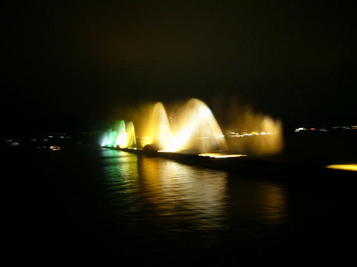 写真の世界一横に長い噴水があります (放水時間決まっていますから確認してください)