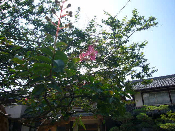 これは写真のサルスベリの花が落ち偶然に白い梅花藻に流れ着いたものです