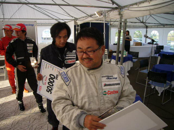 このコースはワンメークのレースでは ほとんど抜く箇所が無く相手のミス意外では前に出ることがひじょうに難しく 今回も6位入賞(6位から縦 賞金有り)が遠く感じられましたが そこは能天気な私ですから 予選の反省を寺沢氏と打ち合わせしサイドセッティングをしてもらい昼からの決勝に挑むことになりました(予選時お守り忘れていました)