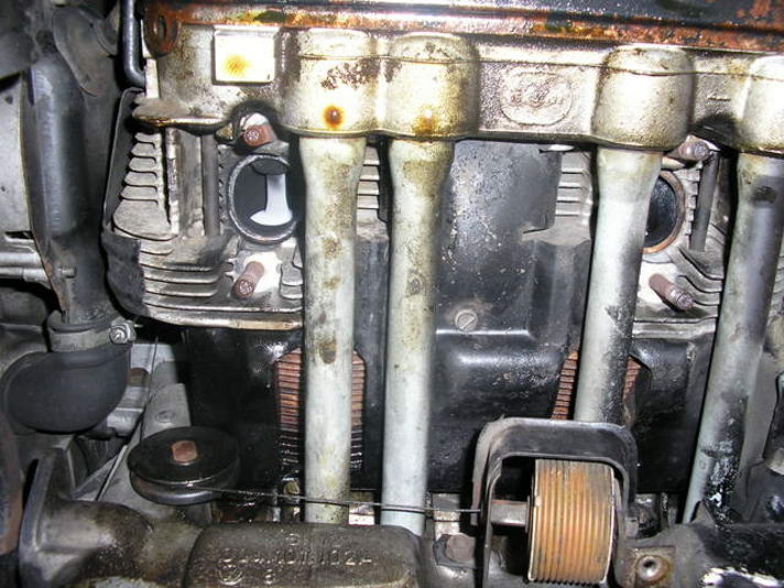 タペット音が大きくなると吸排気のバランスが崩れ、本来のパワーが損なわれます。マフラーの脱着も行い、プシュロッドパイプのオイル滲みもメンテいたしました。