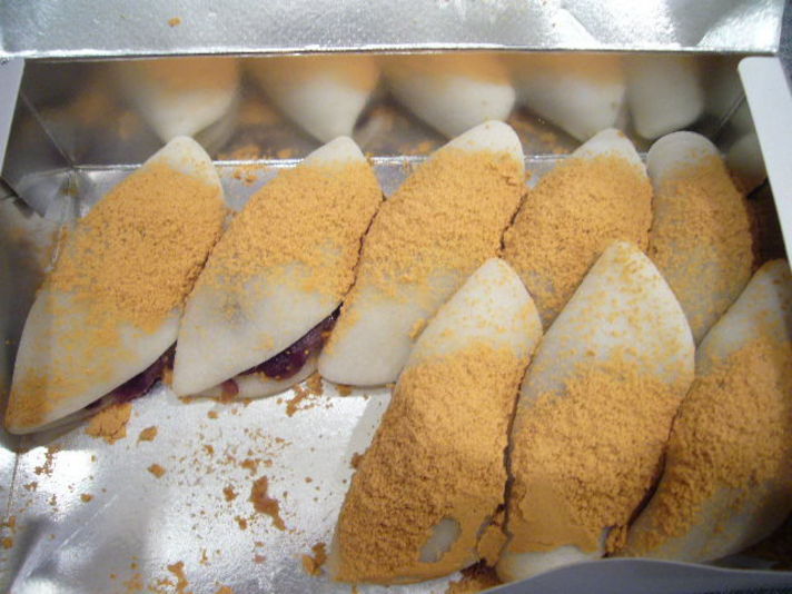 最近 年を感じるのは 和菓子が美味しく思えてきたことです. 生クリームを沢山入った洋菓子に 20世紀の大発明ティラミスも 大好きですが 和菓子の美味しさが少し解るようになりました 今回の美味しい和菓子は 今年私が頂いた中でも 私の口にあいました まず 白い部分は 餅と団子をあわした食感で味は微妙に甘く あんは 粒あんとこしあんのミックスでかなり甘さは 控えめそして最後に 黄な粉が降りかかっています 一度京都に観光に来られた時には 食べてみてください (箱にも書いていますが 冷蔵庫に入れると硬くなるのであまり 日持ちはしません) 私の食べ方 買ったその日はそのままで食べ 次の日はオーブンで少し焼きますこれ黄な粉がこげてまた美味しいです