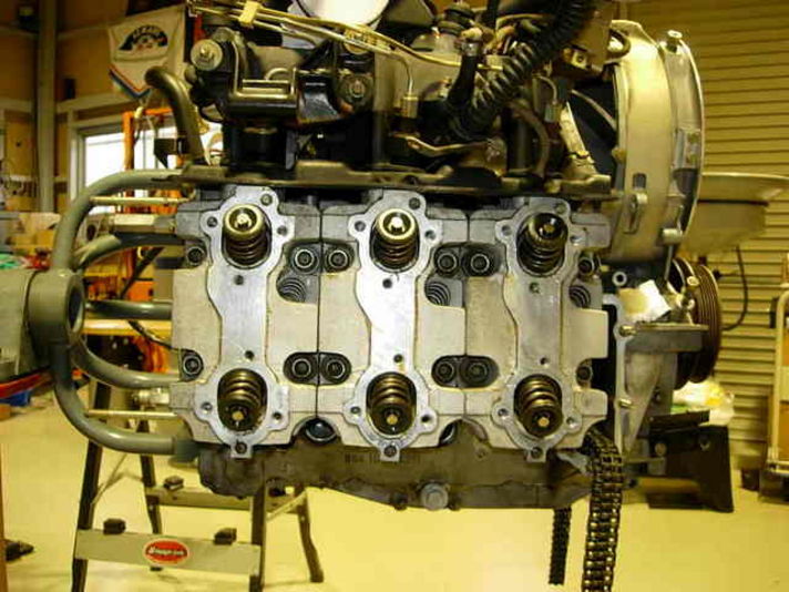 エンジンスタンドに取り付けられエンジンは早速分解作業が始まりました