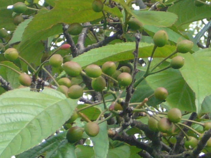 クレヨンの隣の家の桜の木のサクランボも少し実の上が赤く色づいてきました