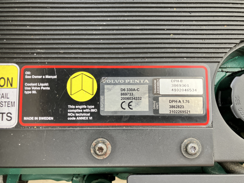 エンジンはVolvo D6-330の高馬力エンジン搭載で快適なクルージングを楽しめます。