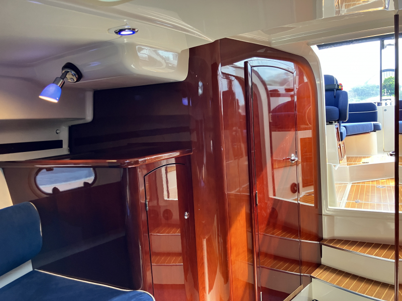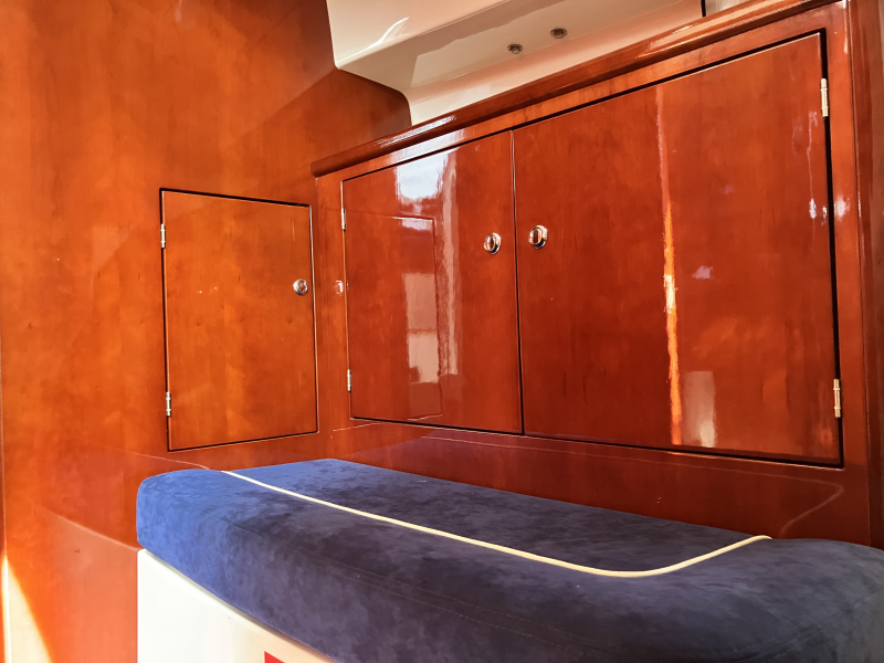 船内は光沢のあるチェリー材の建具で構成された2つの独立したステートルームがあり使い勝手の良い造りとなっております。