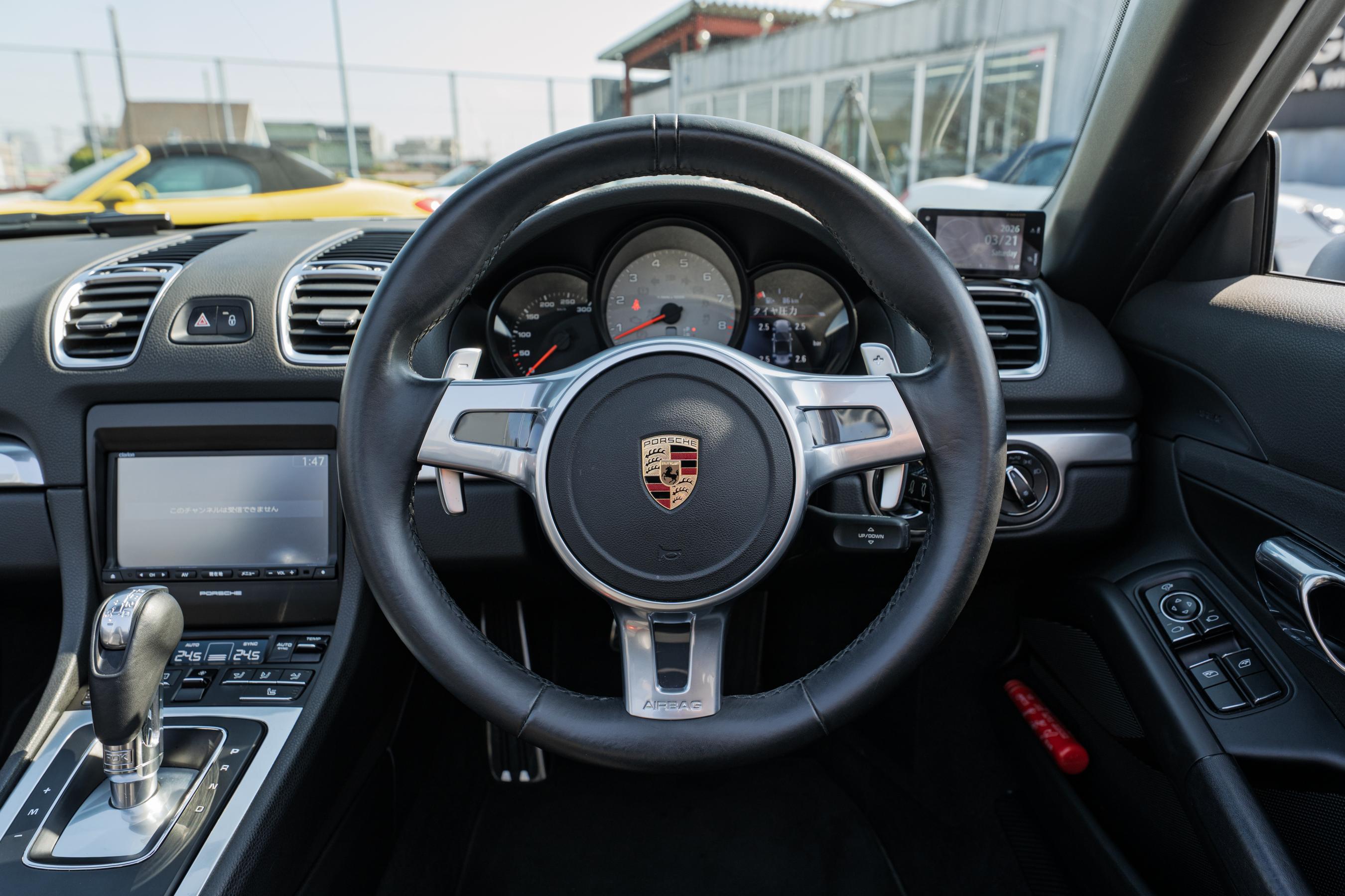 ポルシェ ボクスター(Type981) S ブラックハーフレザーシート シートヒーター レッドソフトトップ ク...